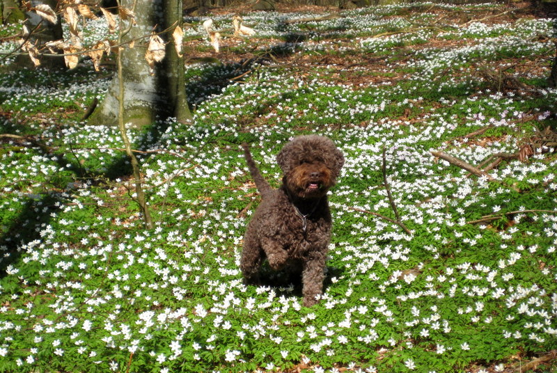 Milo is not that intrigued when I bring my camera, and he is not interested in either posing or the flowers. Rather a roll or two in the leaves – Not on the anemonies, Milo!!!