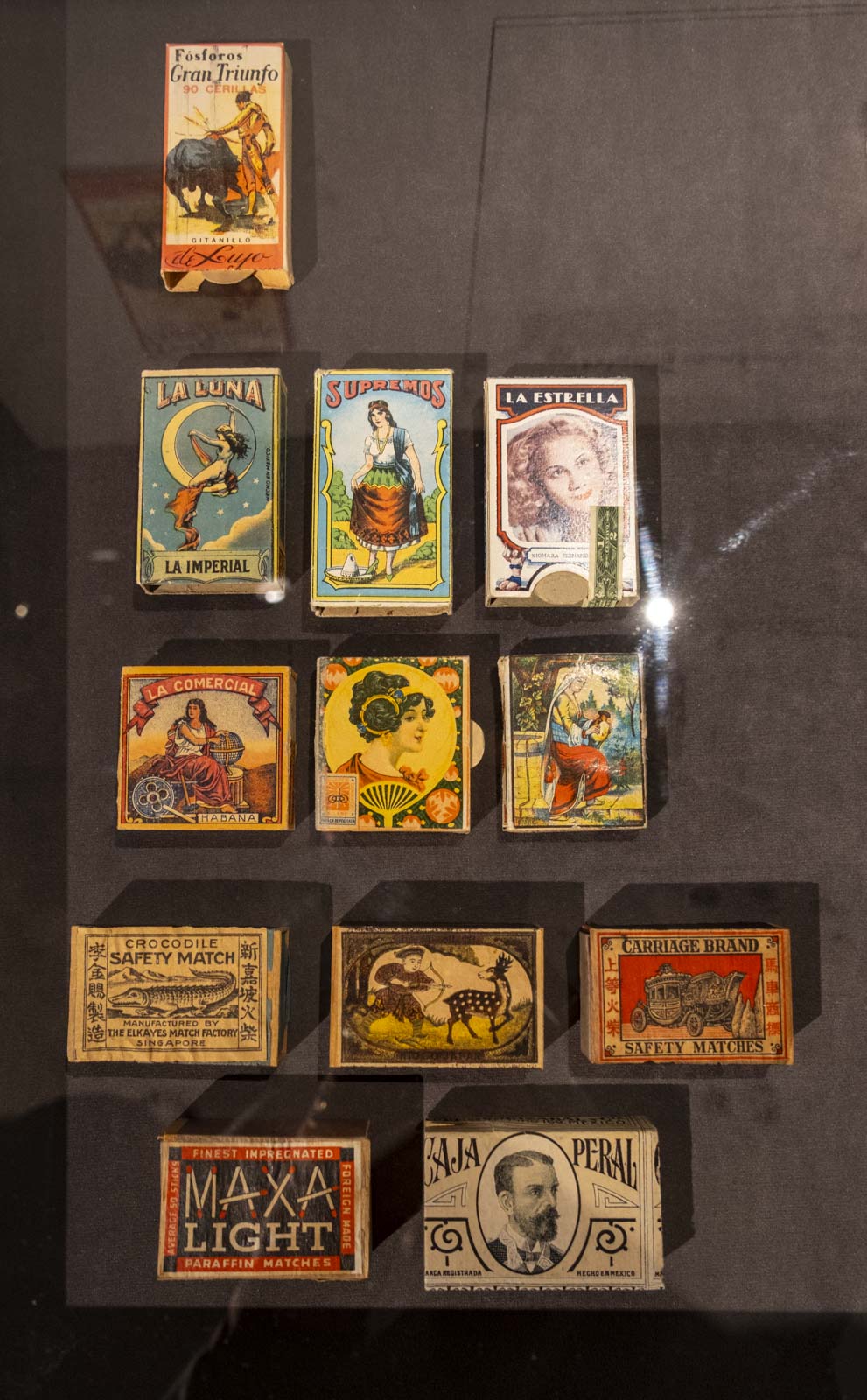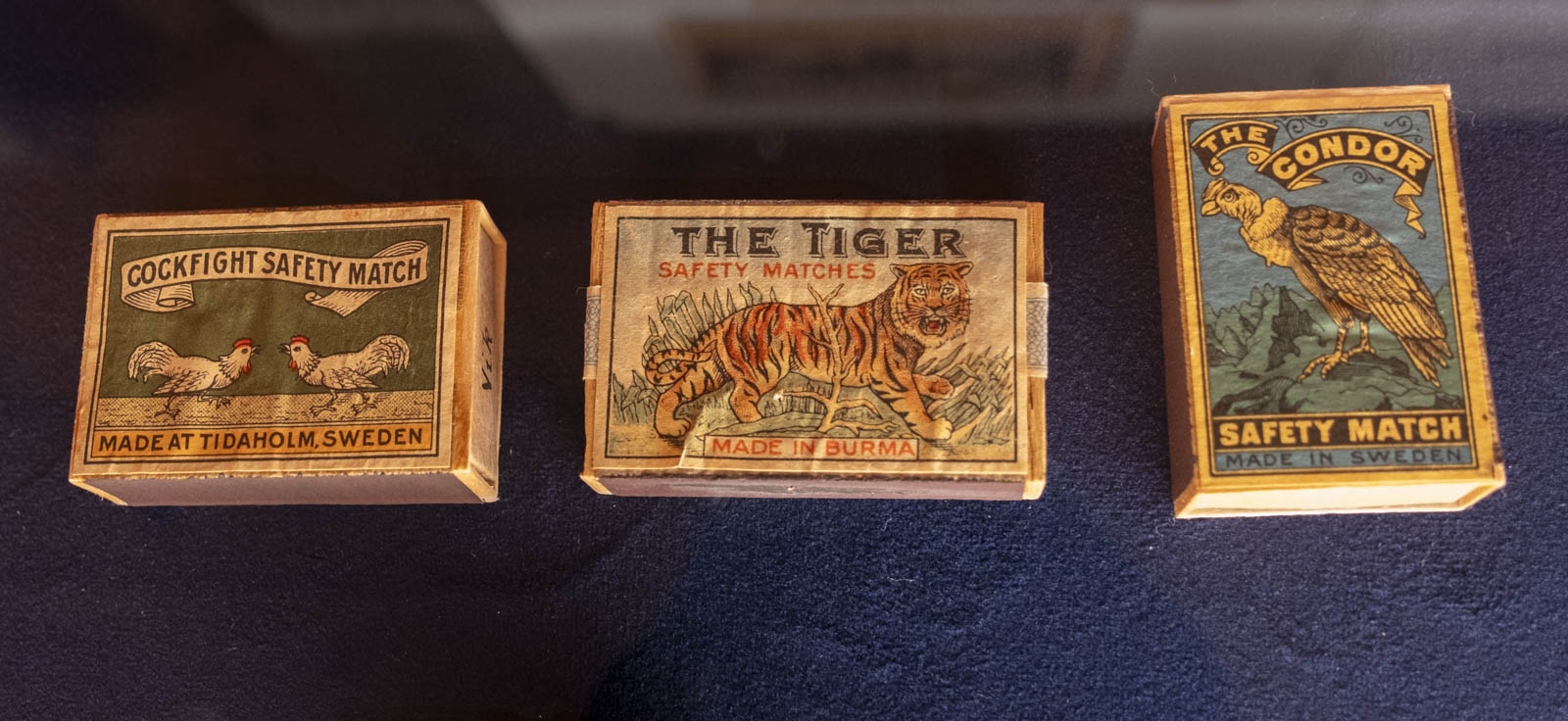 On display were also many of the beautiful covers made for the match boxes. I remember some of them from my childhood, but mostly of course the sun – match – boy. My favourite is the Tiger – hanging on the wall too. Unfortunately the designers´ and artists´ names (from many countries) were lost over time, and only one of them was truly recognised – Einar Nerman, who made the little boy in the first gallery far left. That boy was his own son, Tom, portrayed in 1936.