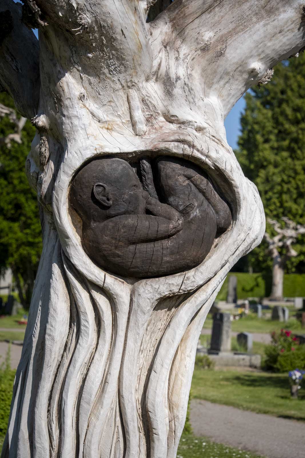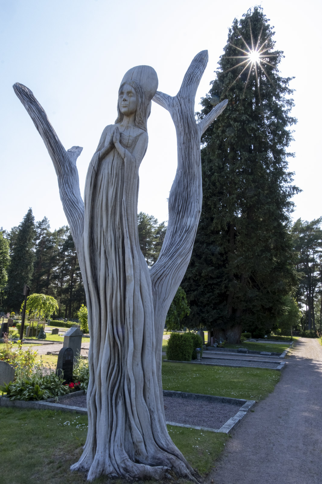 The final gallery shows her work at Bredåkra cemetary. She was asked if she could make something out of the many dead elm trees there – and she did. She made magic. In these photos you see: ”We are all someone’s child”, ”Madonna and child”, ”The Elm Angel” .