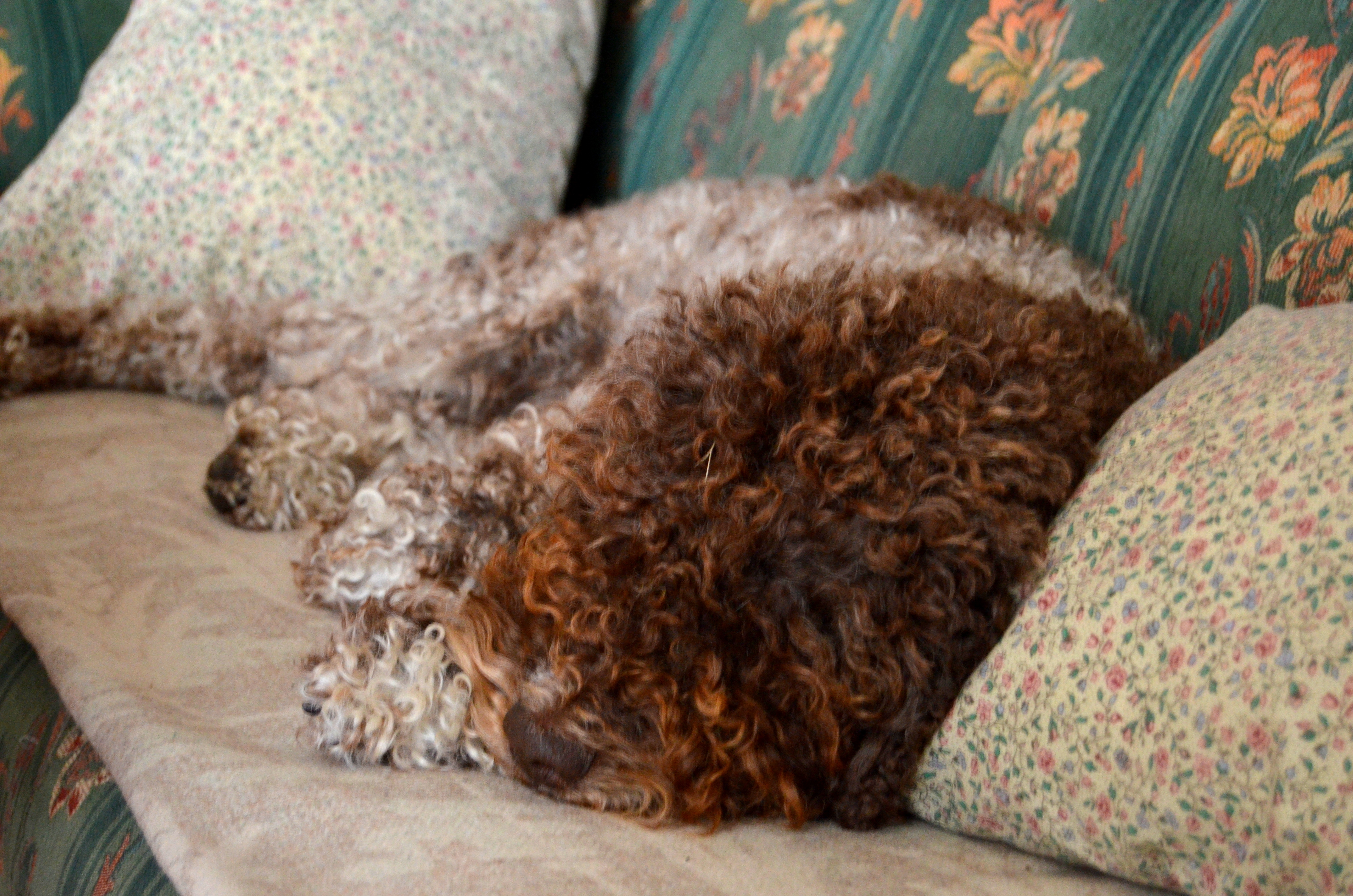 More than me love this room, and last week we had Milo’s girlfriend, Esther, here. Both sweeties kept me company every day when they had got tired of playing outdoors. Reading was not easy though…as the young lady liked to sprawl her longlegged body all over my chair. I had to put a blanket there.