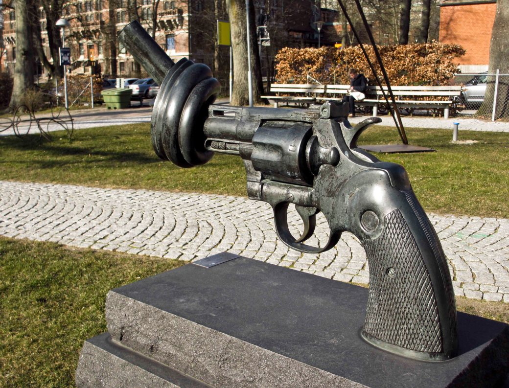 Sagacious – Non-Violence, the bronze sculpture by Carl Fredrik Reuterswärd