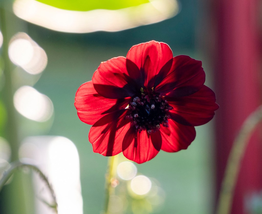 Rounding the glass house, I caught the last sunrays in a Cosmos chocamocha – which sent us a fiery…