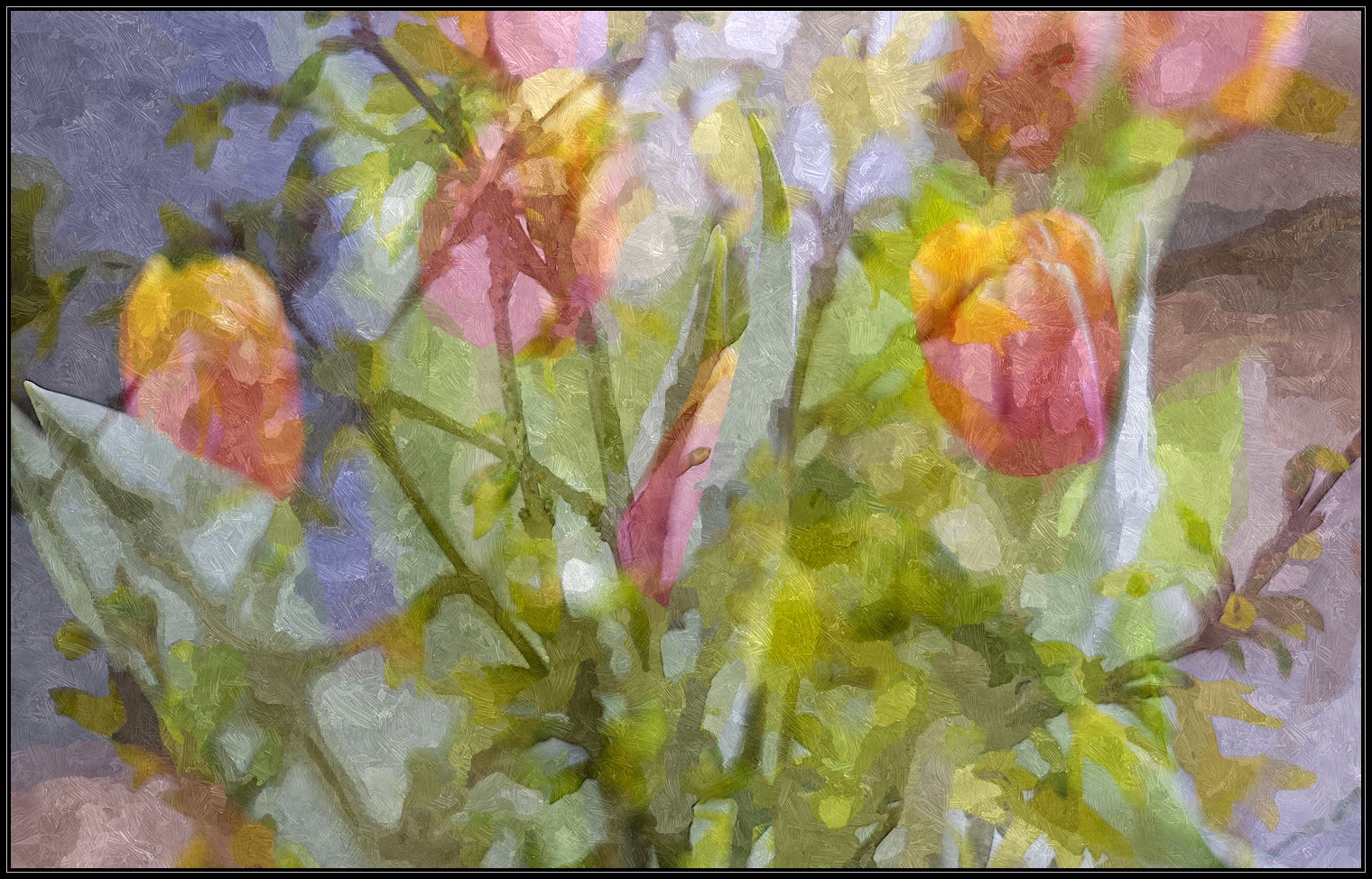 Photosketcher for fun today. It has been a sunny day, and in my windows the flowers are coming alive! Outdoors it is still too cold, but I am in the mood.