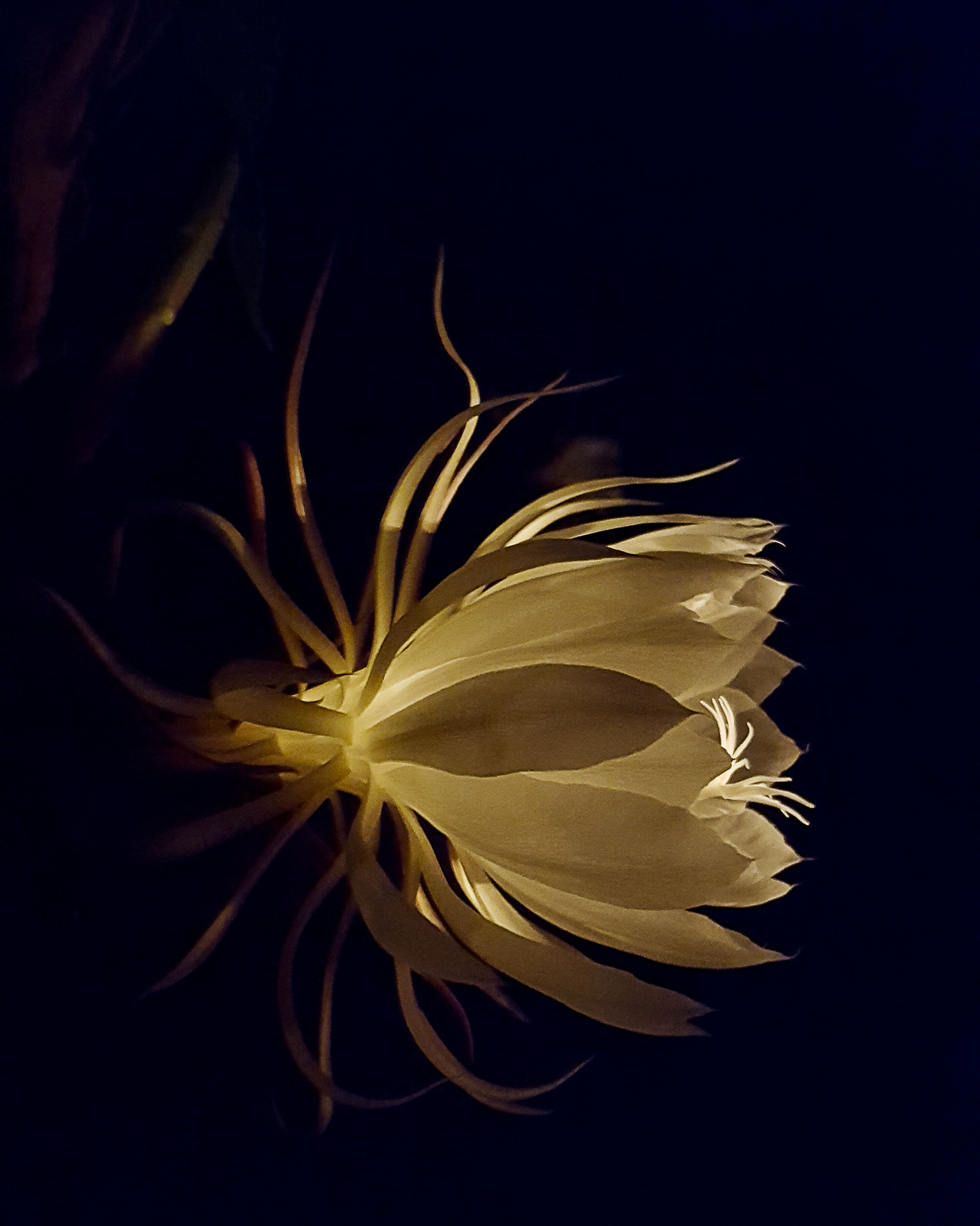 My cactus flowers are about 20-25 cm and the flower lasts only for about an hour, night time. They were photographed with my cell phone, and I used a small flash light to make it all possible. I knew when the flower would start to unfold, and by then I must have tried out how to use the light.