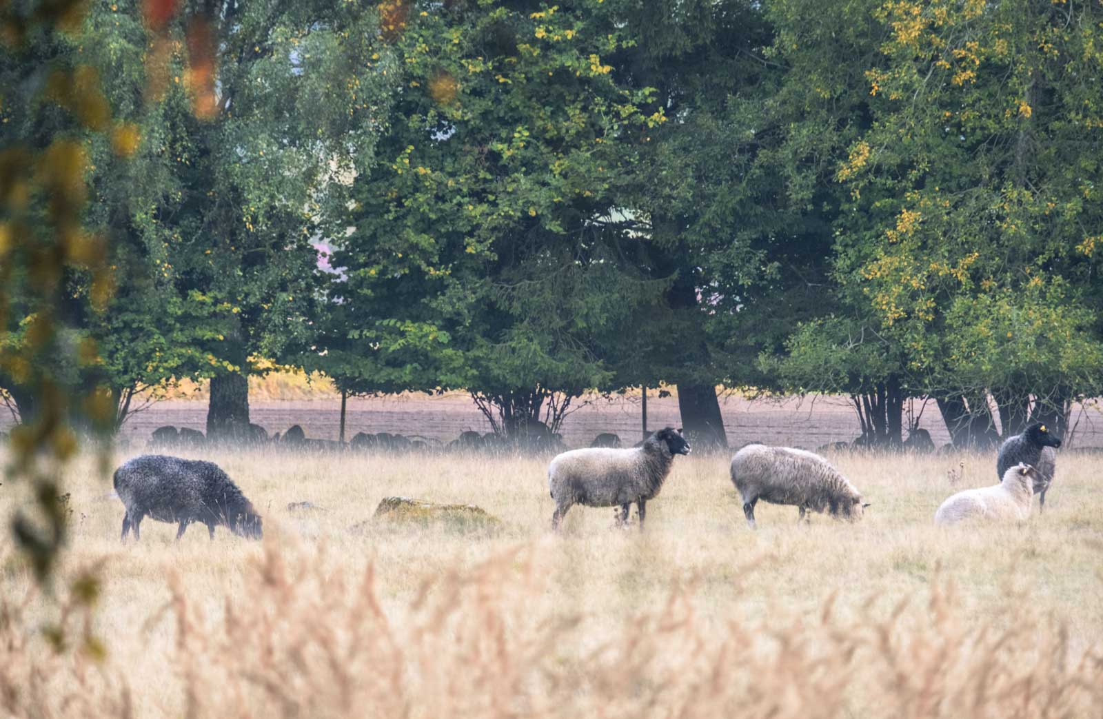 Yesterday’s late Autumn walk with silent friends. Mist is mostly an autumnal fenomenon, created by the warmth of the day and the chill of the night. But, we’ll stick to the poetic mood. The soft light and the quietly munching sheep set my mood right for the end of the day.