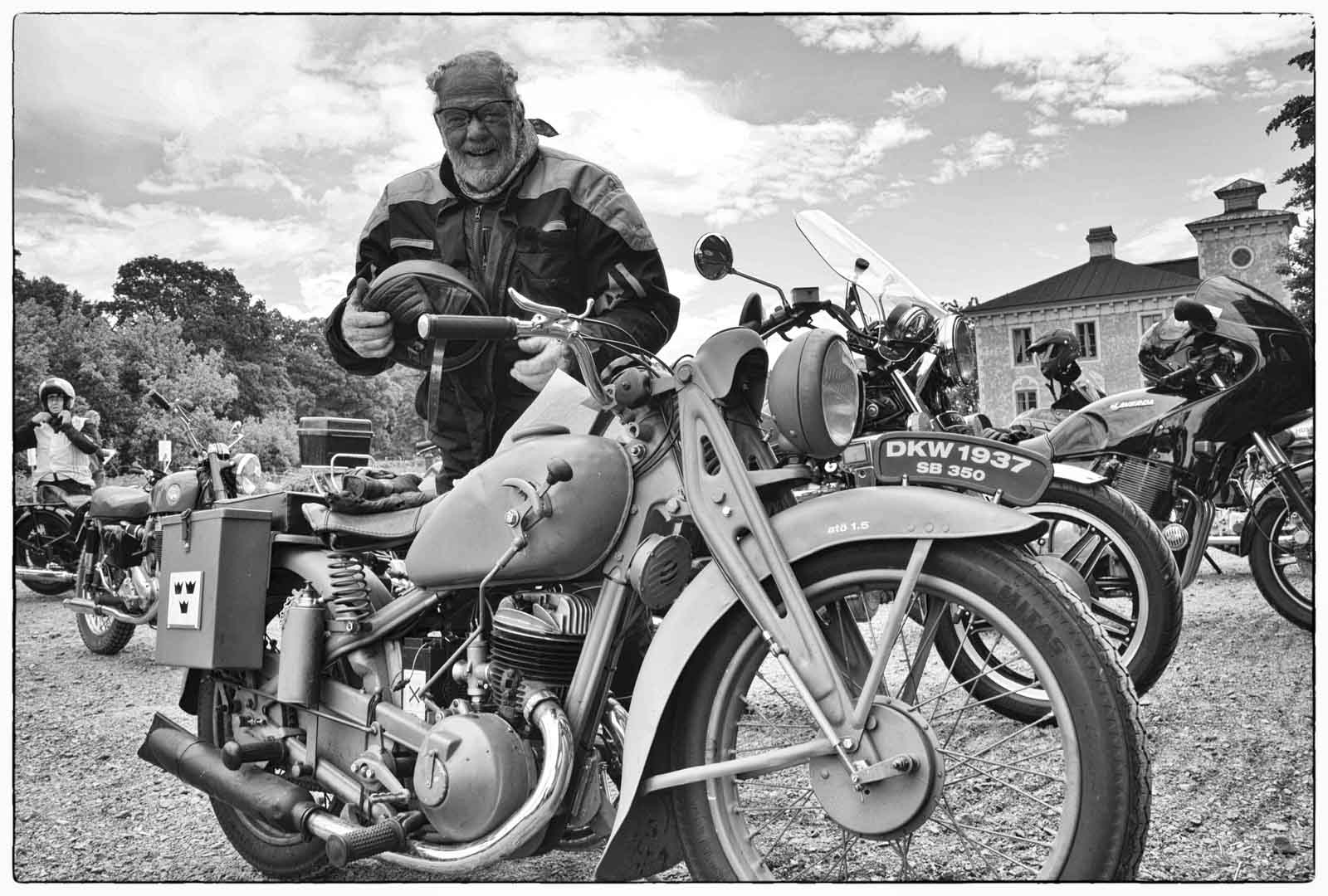 Some years ago, I attended a gathering at a restaurant where I met this old biker that I totally loved! His white beard and expressive face just convinced me to ask for a photo – which he gladly let me take. The other biker posing with his vehicle was a happy guy, so for his portrait the bike itself was essential. These bikers were very easily approached and I felt at ease asking them – a big step forward for a shy person like me.