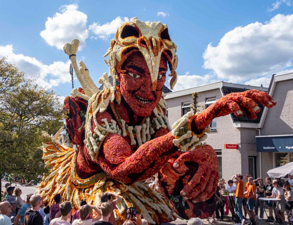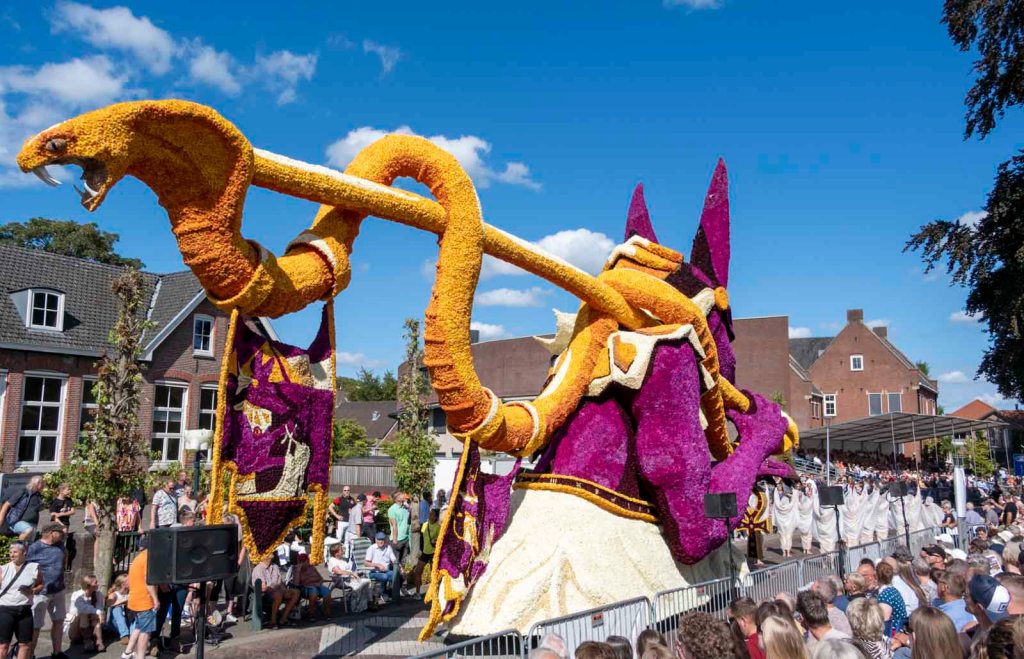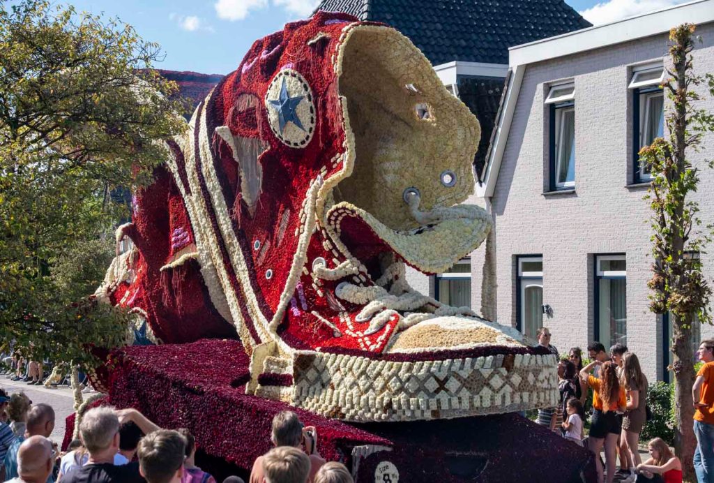 The Dahlia Festival is not only flowers – but decorated floats in annual parades called Corso. In fact we saw more than 20 of them in this little town. They were really well made down to the finest detail. The people here start in April with ideas and sketches, then they make the figures and paint them. When the Dahlia season arrives in September, the floats are decorated with flowers the same colours as they were painted in.
