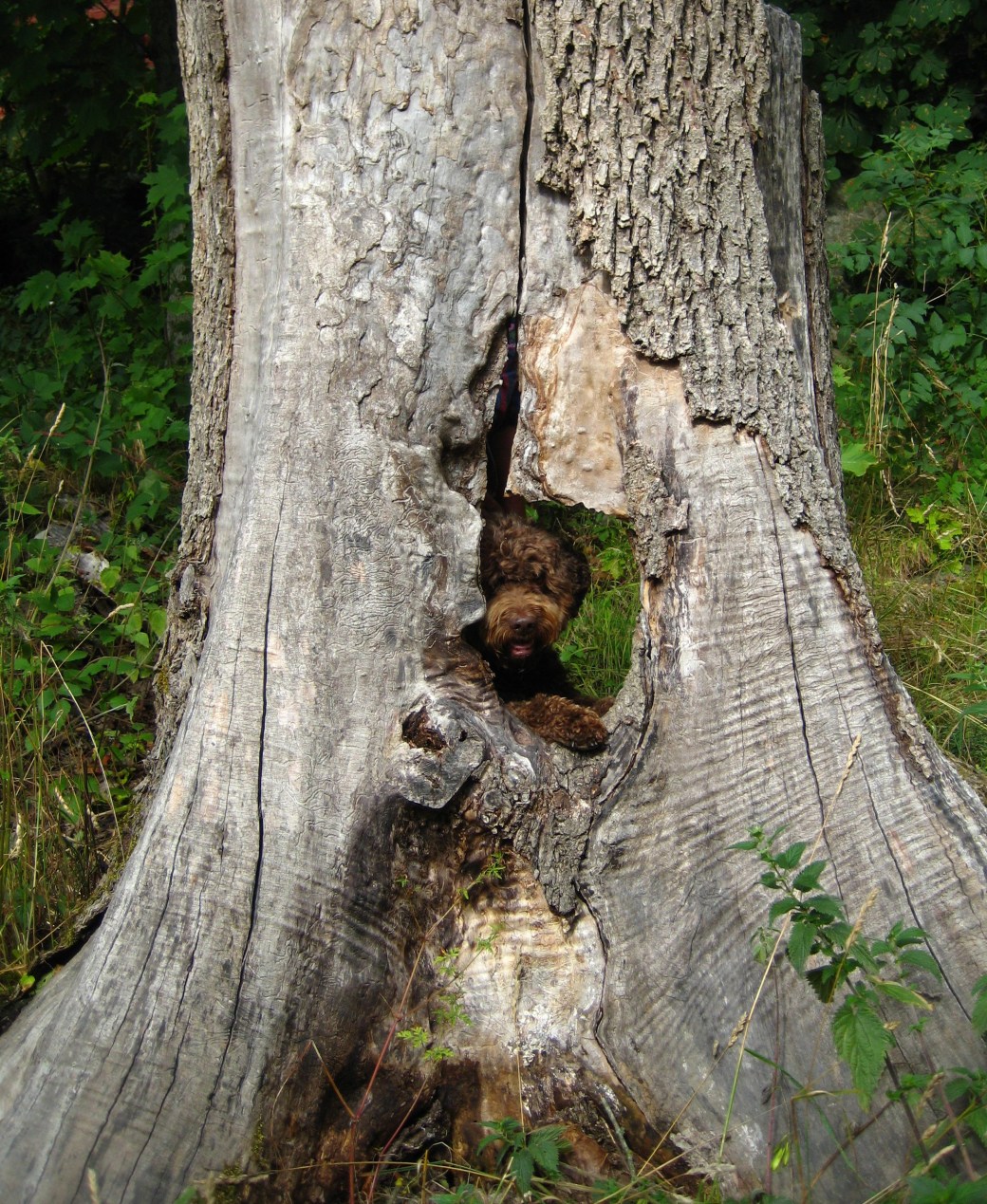 This is Mille, my first Lagotto, posing nicely… As a child I too spent many hours every day in the forest and in the trees – climbing, jumping, playing and wishing I could swing in lianas, like Tarzan. Sigh…