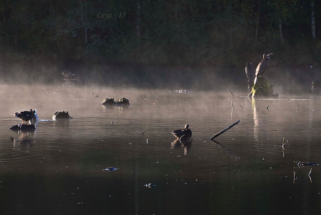 I certainly was richly rewarded. As the sun slowly warmed up the air – unveiling the ducks, swans and cormorants. A heron gliding low in the mist.