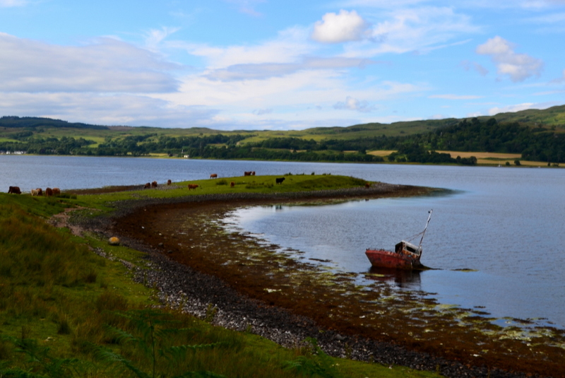 From Scotland – Highland Cattle grazing – while a ship is sinking…