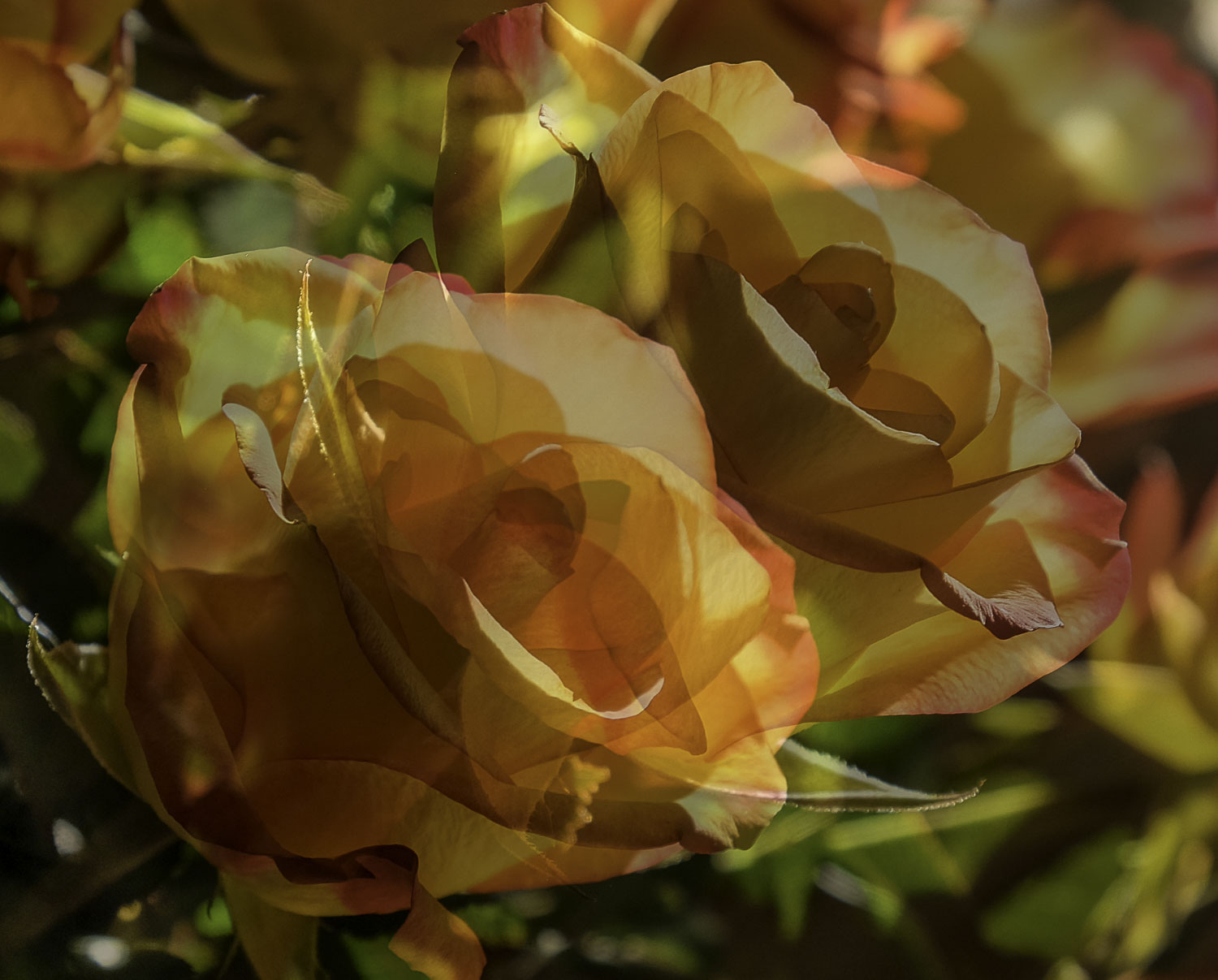 Finally, I was presented with some lovely roses from my husband last week – I could not leave you without them! The sun is shining in through my windows, and on top of that, I made a double exposure.