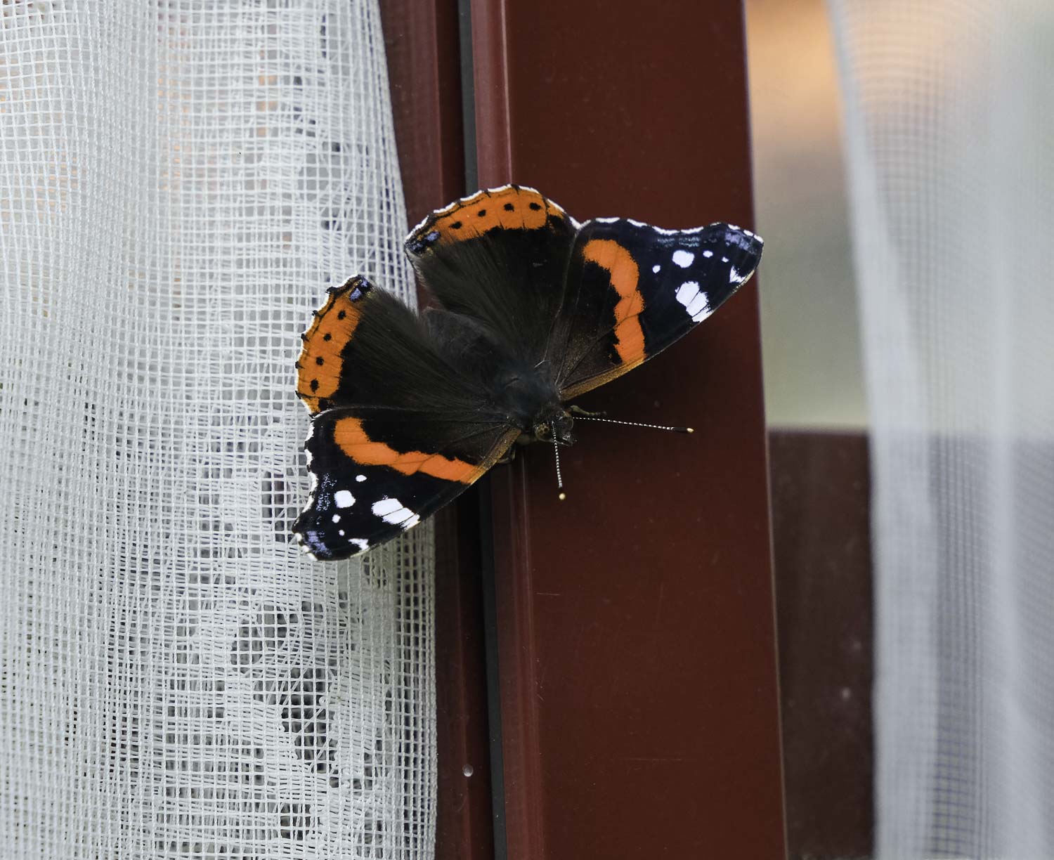 A more close-up view I got from one of them resting on the glasshouse. This year they have kept their colours well too – no hail or much rain. Indeed one of my favourite butterflies. Sorry to say, the buddleias will soon be over, but we have had a marvelous insect year and the butterflies are no exception. So grateful!