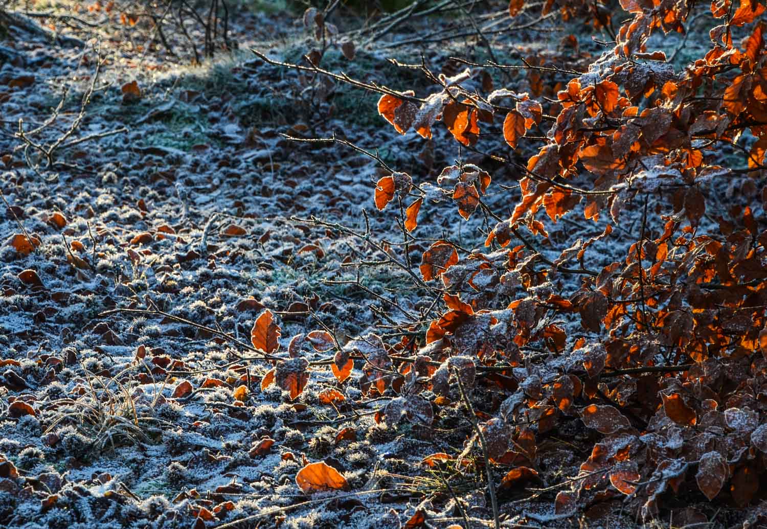 I turn around for a last shot – and the forest is glowing. Soon only the highest tree tops. I cannot say how grateful I am for this day. Not to talk about Totti – rocketing through the forest, rolling in the cool frostiness, barking with joy.