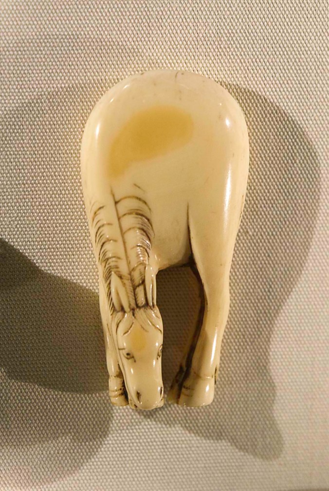 A netsuke is an artistically carved button-like toggle that was used to fasten cases for medicine and tobacco onto the belt of a kimono. From originally having been a simple piece of wood, the designs, motifs and materials changed and developed over the centuries. Ivory and wood, but also metal, horn and porcelain was used by the skilled artists.