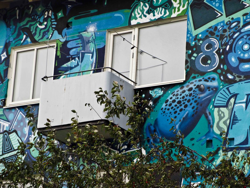 These two, the blue and the red one, are painted on the same house in Malmoe – One long side in red tones, the other one in blue. These two details caught my eye. The frog – look at his eye! The bird I adore as well.