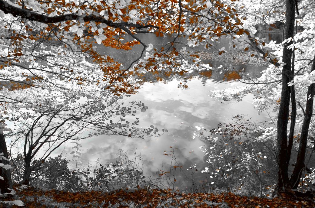 My walks in the foggy mornings at Hammarmölledamm (a pond in our forest) this week, showed the area in a new mood every day. Fog and mist too are great changers.