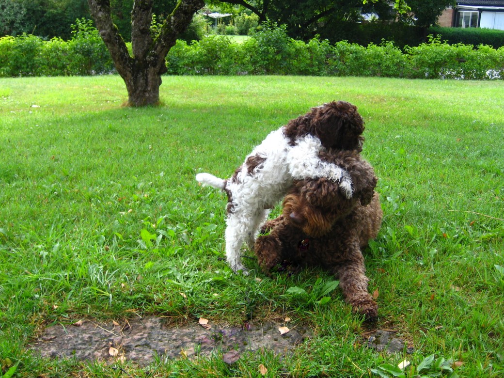 From Dutch Goes the Photo – an agility dog! Which made me remember how my two Lagottos, Mille and Totti, were experts on how to overcome obstacles. They still managed to keep up their close contact…