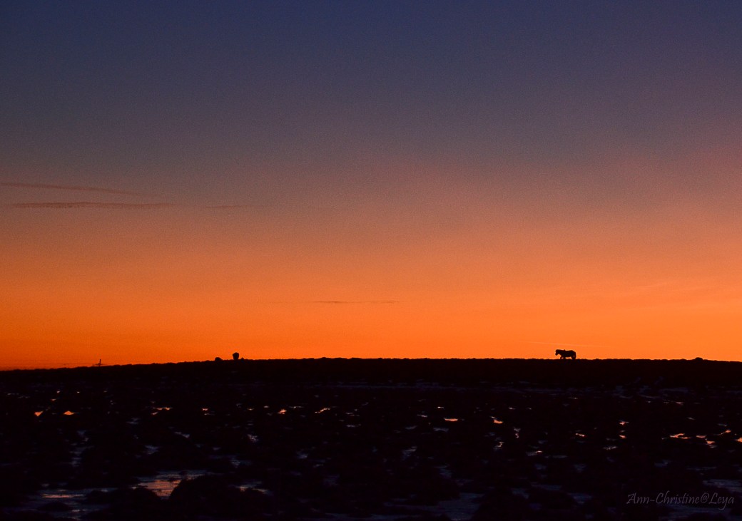 Returning to Reykjavik through the cold landscape – some icelandic horses on the horizon.