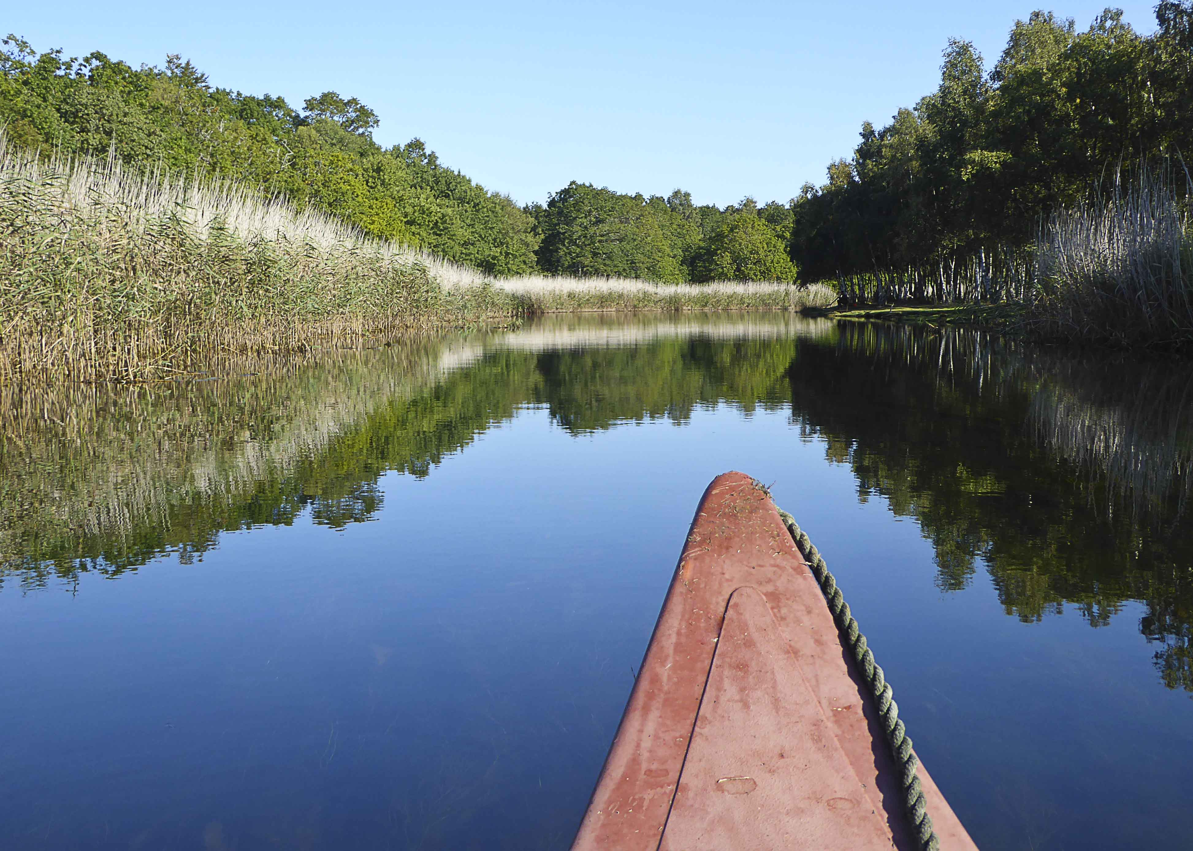 Canoeing a silent morning at our summerhouse – the river doesn’t stop over there…it turns right beyond the trees. Herons usually fly up along the growing reed.