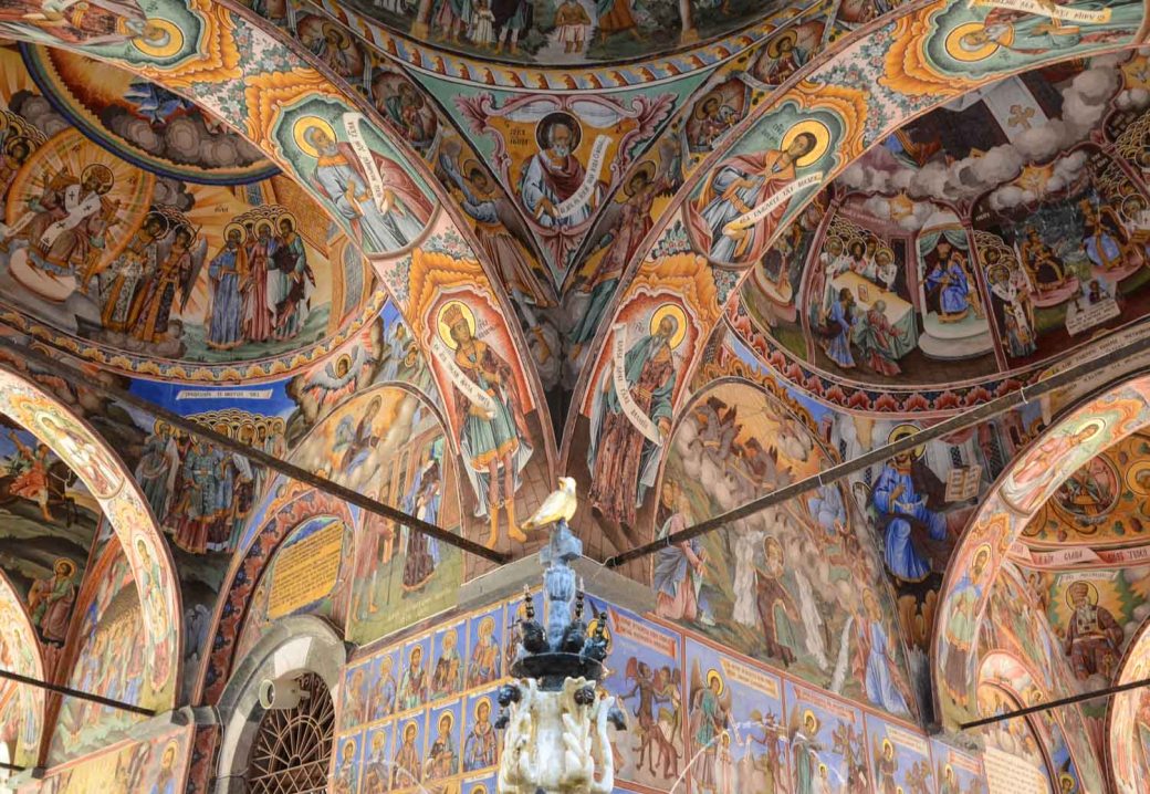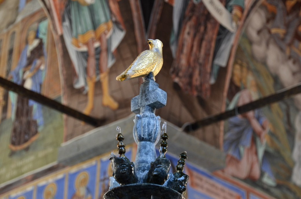 The museum of the Rila Monastery is particularly famous for housing Rafail’s Cross, a wooden cross made from a single piece of wood (81×43 cm). Magnificent – but No photos allowed of course. The cross was whittled down by a monk named Rafail using fine burins and magnifying lenses to recreate 104 religious scenes and 650 miniature figures. He worked for 12 years to finish the cross, and it was completed in 1802, when the monk lost his sight. Stock photos.