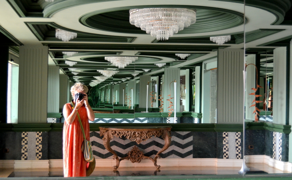 Some years ago I remember walking into a hotel – where I never got any longer than to the lobby…because of all the mirrors and chandeliers. Here it is again!