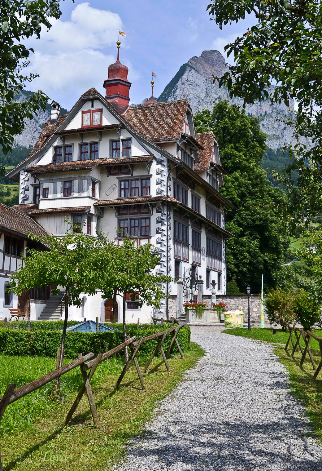 Rådhuset från 1645 är både annorlunda och enastående vackert med målningar som föreställer slaget vid Morgarten. Jag hade turen att få med traktorn på bilden – en typisk bild av Schweiz där gårdarna ligger ”mitt i byn” och lantbruket är en naturlig del även i tätorten.